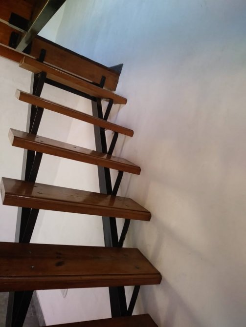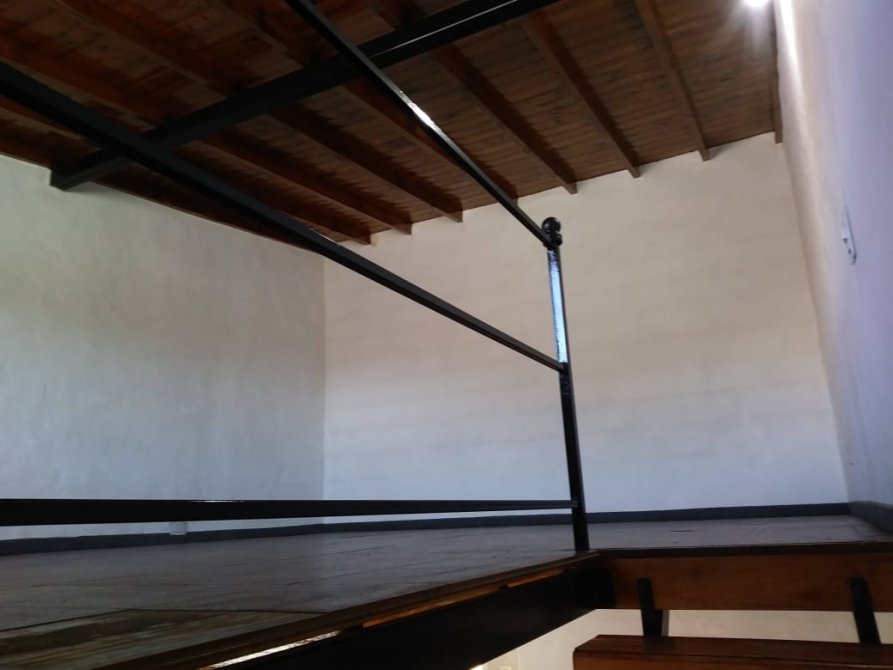 PLANTA ALTA: ACCESO POR ESCALERA DE HIERRO Y MADERA A DORMITORIO DE 20 M2 EN ENTREPISO DE MADERA.